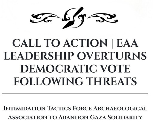arrow-up11arrow-down1external-linkCALL TO ACTION: European Archaeological Association (EAA) Leadership Overturns Democratic Palestinian Solidarity Vote Following Threatsplus-squarepinblacktrowelcollective.wordpress.comfossilesque@mander.xyzMEnglish · 5 months agomessage-square0linkfedilink