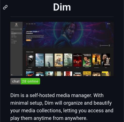arrow-up16arrow-down1imageDim — Self-Hosted Media Manager for Organizing & Playing Your Own Librarysh.itjust.worksxabd@sh.itjust.worksMEnglish · 17 hours agomessage-square4linkfedilink