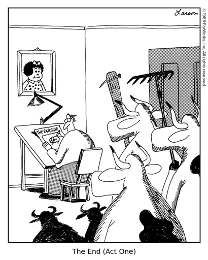 I like the portrait of Nancy hanging above Larson’s desk, Nancy (and Ernie Bushmiller) rules.
