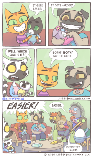 I dunno, the ‘kid is intelligent enough to go to the fridge and get food themselves’ and ‘kid no longer craps their pants’ is a hell of an upgrade. I haven’t made it to a point where things are harder than it was before either of those things.