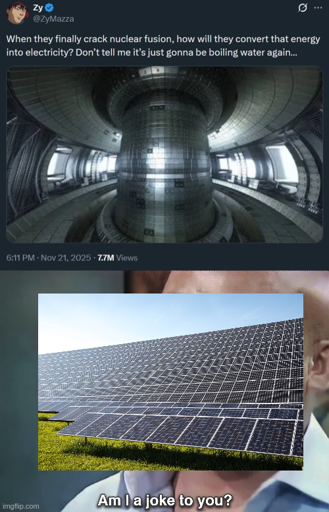 arrow-up11.06Karrow-down1imageIf God had wanted us to have nearly unlimited clean energy, He would have placed a fusion reactor into the sky.feddit.orgmxeff@feddit.org to Science Memes@mander.xyzEnglish · 6 days agomessage-square185linkfedilink