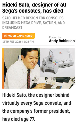 RIP. The Dreamcast will always be my favourite console, thank you.