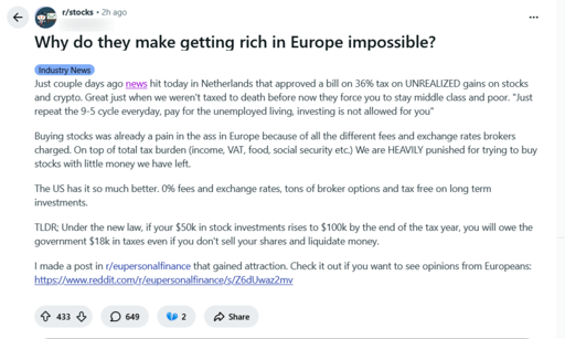 minus-squaredugmeup@lemmy.worldlinkfedilinkarrow-up1·2 days agoAs much as I like fixing society and taxing the rich, unrealised gains are not ensure that small/tiny investors will not be able to afford it. They are unrealised - this only makes sense if the country wants to liquidate their assets every year to pay for these taxes.