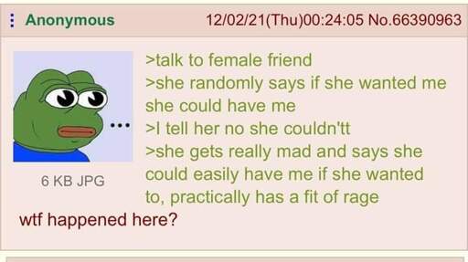 arrow-up12arrow-down1imageAnon has a female friendsh.itjust.works🍹Early to RISA 🧉@sh.itjust.worksM to Greentext@sh.itjust.works · 1 year agomessage-square12linkfedilink