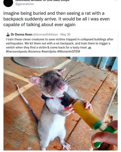 Thanks for the link. This is really cool work! Search and pre-rescue rats are a small part of what Apopo does: they mostly do unexploded mine clearance and tuberculosis detection! 😳