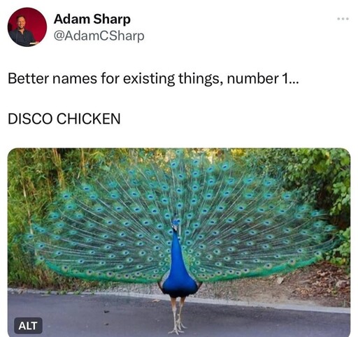 Fits well alongside “cobra chicken” as an alternate name for my country’s national bird.