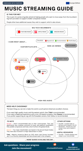 Bandcamp is US owned, but still worth mentioning I think because of their commitment to high revenue sharing, about 80-82% goes directly to the artists. They have custom playlists, and offer high quality formats as well.