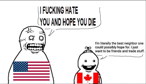 arrow-up11arrow-down1imageCurrent state of American - Canadian relationslemmy.worldSine_Fine_Belli@lemmy.world to NonCredibleDiplomacy@sh.itjust.worksEnglish · 29 days agomessage-square4linkfedilinkfile-textcross-posted to: neoliberal@lemmy.world