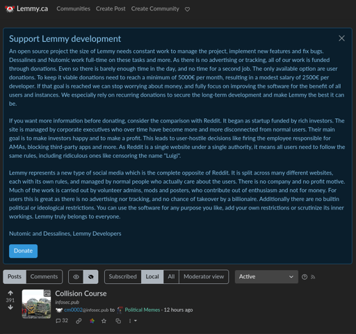 Conversely with the Lemmy developers, if they are made out to be so hostile and unlikable to a vast part of the Lemmy community … then why are the Lemmy developers even making any of their software available and open to everyone else? If there is so much animosity between people, why would any group share their software or their products with anyone they are opposed to?