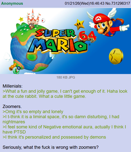 As a gen z-er… can’t say I ever felt like mario64 was liminal or heard it describes that way lol