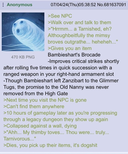 “whaoa dude the lore is so sick dude like the wiki explains how bambieshart was actually an agent of the glimmer knights and was actually killed by an opposing faction dude if you go to the wall precisely after killing the ice queen boss you can drop down a ledge to where the wall would collapse him and seal it dude this lore is so epic”