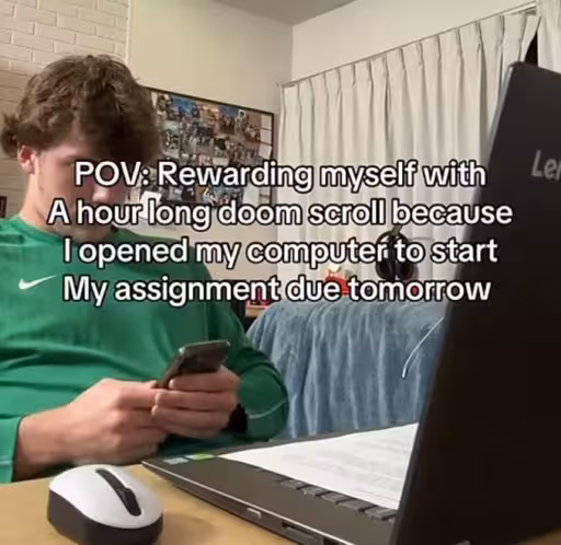 My assignment that was due yesterday that I didn’t do because I was working on the assignment that was due three days ago