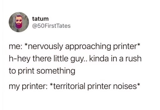 minus-squareElgenzay@lemmy.mllinkfedilinkEnglisharrow-up10·7 days agoYou gotta act like you’re uninterested in getting your stuff printed
