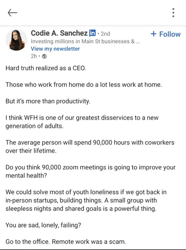 arrow-up11arrow-down1imageYouth loneliness is cured by Adults going into the officesh.itjust.worksalphacyberranger@sh.itjust.works to LinkedinLunatics@sh.itjust.worksEnglish · 7 months agomessage-square5linkfedilink