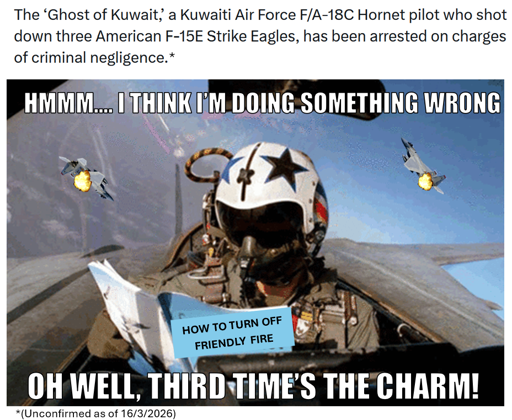 And those pilots are going to assume that their logistics infrastructure did the bare minimum and that they don’t need to worry about Kuwaiti air defense because they’re on the same side and IFF should identify them correctly.