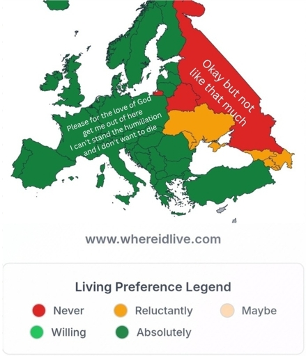 This map is basically “where are bad guys from in movies”. This post would imply one would rather live in places with banned gay marriage and illegal changing of gender than fix a place that, although quickly barreling in that direction, hasn’t gotten there yet.