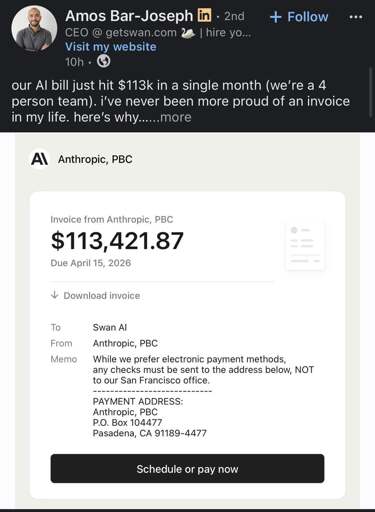 Their company is providing AI tooling, and the clients are paying for it from what I can see. He’s “proud of the invoice” because his company is earning a margin on effectively reselling it. The more they paid Anthropic the more their profit was.