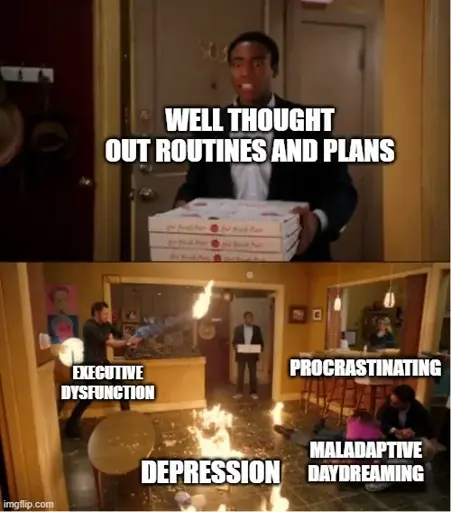 The plans are only well thought out if they correspond with your adhd personality. My plans start after 10am and 32 cups of coffee and rarely fail.