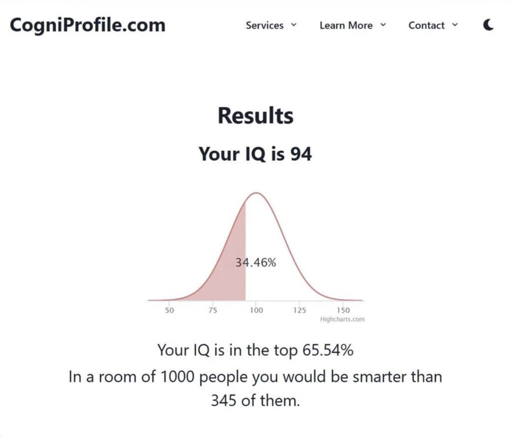 Eons ago, when I joined the army as a conscript, the officer said I scored higher than 90% of anyone taking the test.