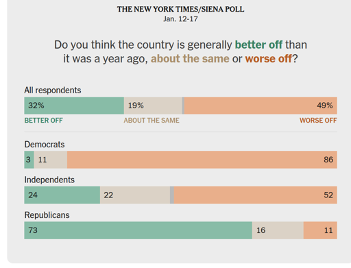This is fake. There are no Dems that think the country is the same or doing better.