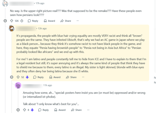powerstruggle@sh.itjust.worksM to stupidpol@sh.itjust.works · 3 days agoAnti-woke redditors defending the militarization of ICE because he is legal latino and blaming the workers for wokeification and defending the owners and CEOs of the gaming companies.sh.itjust.worksimagemessage-square2linkfedilinkarrow-up11arrow-down10file-text
