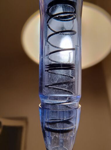 My speculation is that it’s to reduce spring noise. That strengthened region at the middle is where the spring will buckle outwards most, resting against the barely visible side rails on the inside of the case. Instead of just one wobbly contact point it now has three rigid ones as a “skate” to reduce the stick-slip noise when opening and retracting the tip. Is this right?