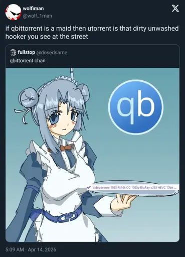 cm0002@libretechni.ca to Piracy: ꜱᴀɪʟ ᴛʜᴇ ʜɪɢʜ ꜱᴇᴀꜱ@lemmy.dbzer0.comEnglish · 9 days agothank you qbittorrent chan :3lemmy.mlimagemessage-square20linkfedilinkarrow-up1176arrow-down119