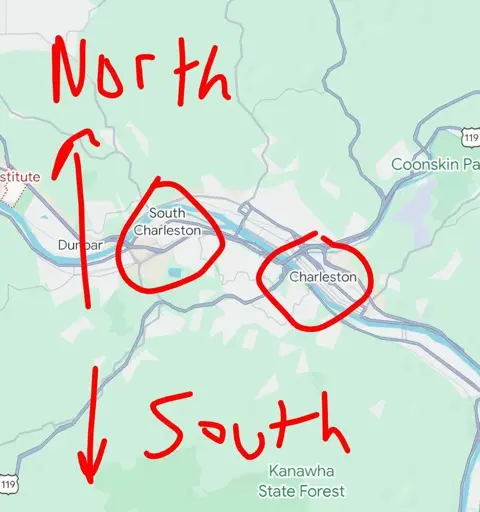 South Charleston is on the South bank.