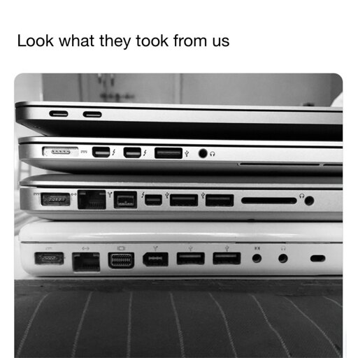 Edit: to be clear, I know this is a stack of Mac’s in OPs picture, but the development that the entry models have basically no ports at all is a more recent development. Having to pick the pro just to be able to connect your stuff without dongles or hubs is a bit insane considering the price (and price difference).