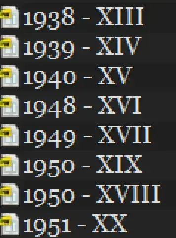 Would you mind sharing the revelation? I’m not sure yet what’s infuriating. The files are sorted by year primarily; the only tie is 1950, and “I” (in “XIX”) comes before “V” (in “XVIII”) alphabetically, so they’re in order as well.