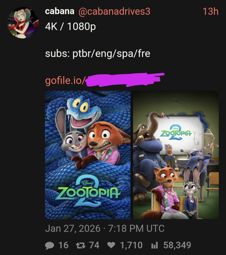 LiamBox@lemmy.ml to Piracy: ꜱᴀɪʟ ᴛʜᴇ ʜɪɢʜ ꜱᴇᴀꜱ@lemmy.dbzer0.comEnglish · 13 days agofor some reason, there are twitter accounts distributing movies in cloud storage rather than torrents.lemmy.mlimagemessage-square61linkfedilinkarrow-up1172arrow-down14file-text