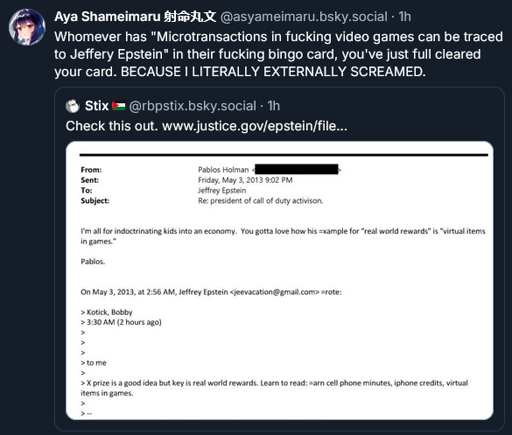 Yeah, but Bobby Kotick discussing this with Epstein is the real interesting part here.