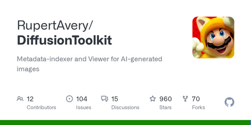 arrow-up11arrow-down1external-linkRupertAvery/DiffusionToolkit: Metadata-indexer and Viewer for AI-generated images v1.10plus-squaregithub.comEven_Adder@lemmy.dbzer0.comM to Stable Diffusion@lemmy.dbzer0.comEnglish · 14 days agomessage-square0linkfedilink