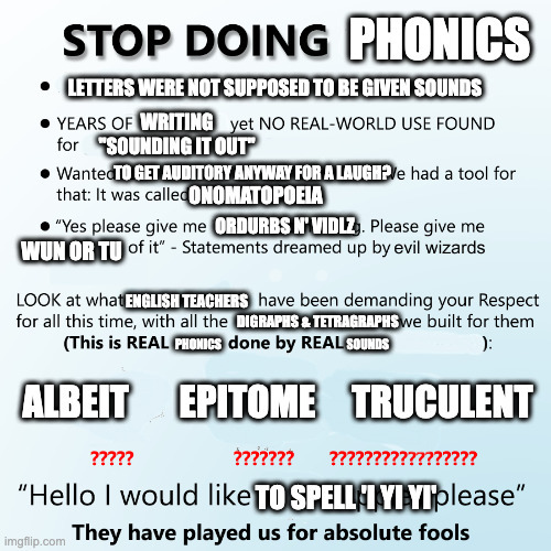 MalikMuaddibSoong@startrek.website to Linguistics Humor@sh.itjust.worksEnglish · 4 months agoThe English features I hate so much that I actually learned their true names.plus-squarestartrek.websiteimagemessage-square0linkfedilinkarrow-up11arrow-down10