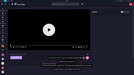 arrow-up11arrow-down1imageFreetube and individious are not playing some videosplus-squarelemmy.dbzer0.comRachelRodent@lemmy.dbzer0.com to Piracy: ꜱᴀɪʟ ᴛʜᴇ ʜɪɢʜ ꜱᴇᴀꜱ@lemmy.dbzer0.comEnglish · 1 year agomessage-square0linkfedilink
