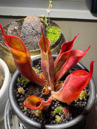 Peat and perlite mostly, I use this mix from Amazon topped with live sphagnum (and some star moss hitchikers)