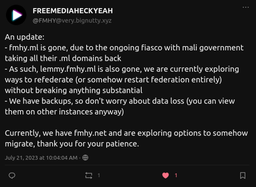 mr_MADAFAKA@lemmy.ml to Lemmy@lemmy.mlEnglish · edit-23 years agoWill this also affect lemmy.ml?lemmy.mlimagemessage-square0linkfedilinkarrow-up10arrow-down11
